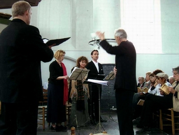 De solisten (vlnr) Aart Mateboer (rug), Maaike Beekman,